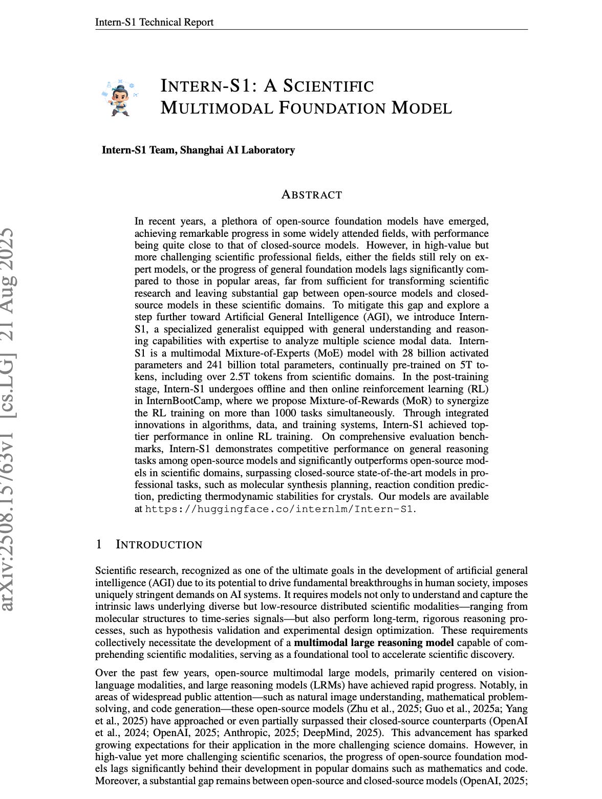 In a landmark technical report, the Shanghai AI Laboratory has unveiled Intern-S1, a new breed of artificial intelligence that is not just closing the gap but is actively surpassing the world’s leading closed-source models in critical scientific domains. The core problem Intern-S1 solves is the innovation bottleneck in science. While general-purpose AIs have become adept at common tasks like coding and mathematics, they have struggled with the specialized, diverse, and often scarce data that defines fields like chemistry, materials science, and physics.